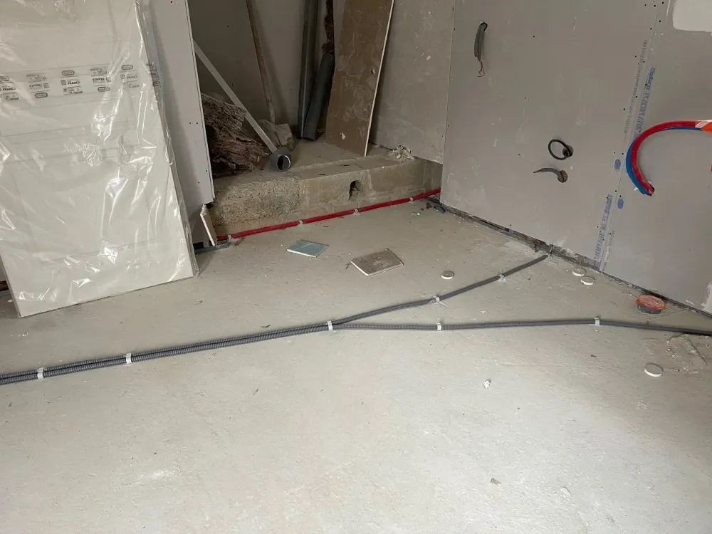 votre électricien a Beauval, a réalisé le passage de gaines préfilées au sol pour ensuite les fixer avec des fixations pour ICTA avant le coulage de la chappe.